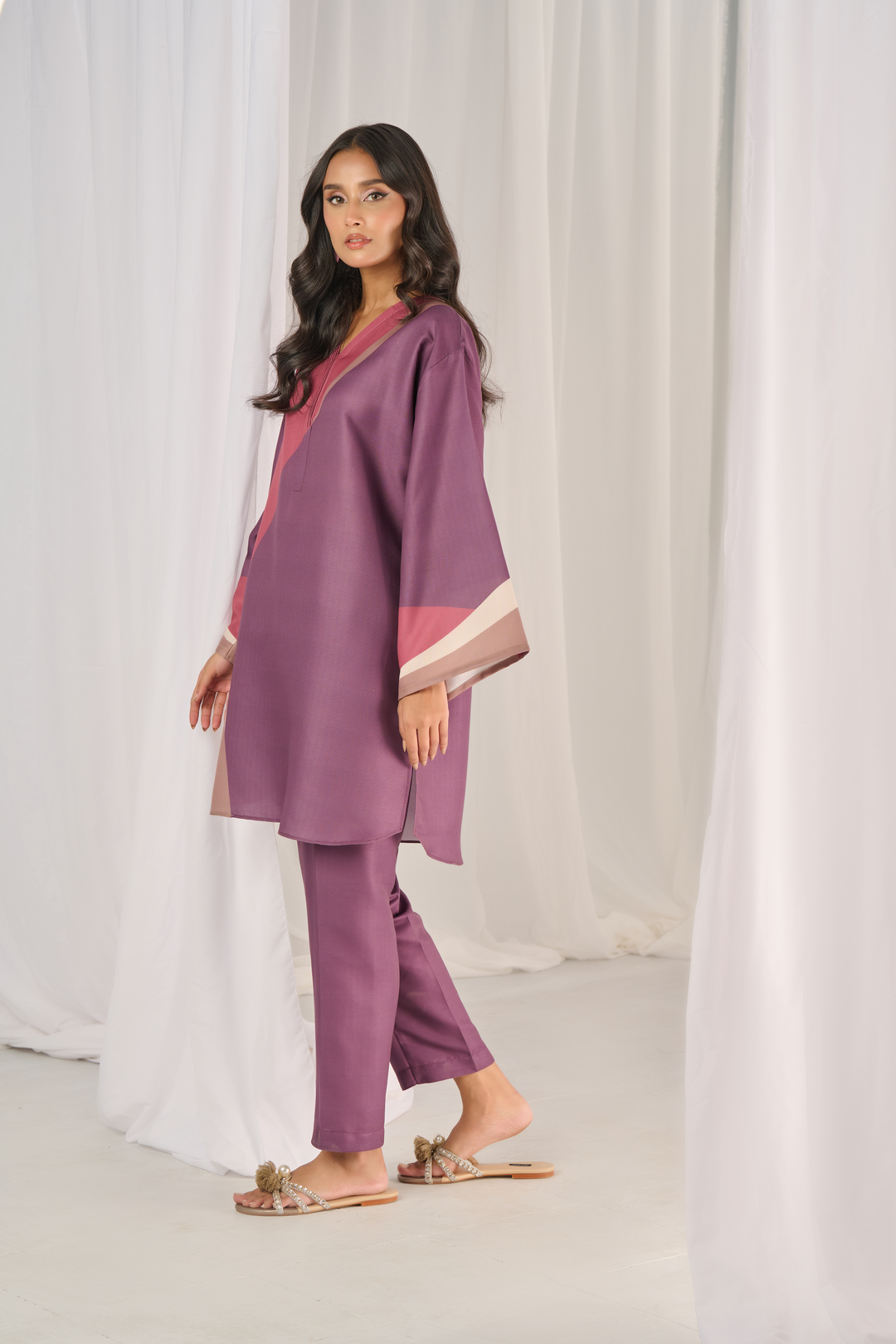 At Heeriye, we try to provide you with the latest designs with quality fabric and this two-piece co-ord suit is designed to keep ladies effortlessly stylish.